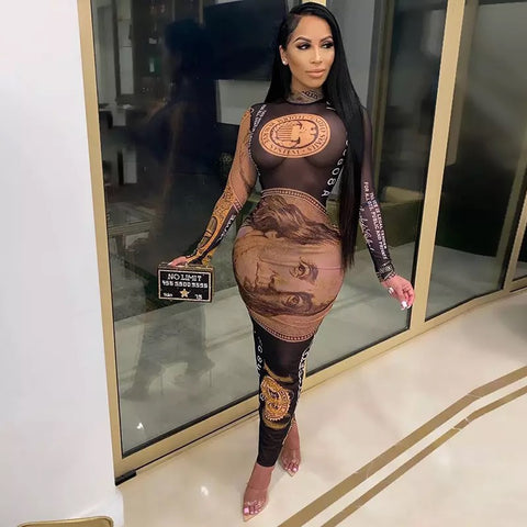 Money print, sheer dress, very light, bodycon, silhouette enhanced