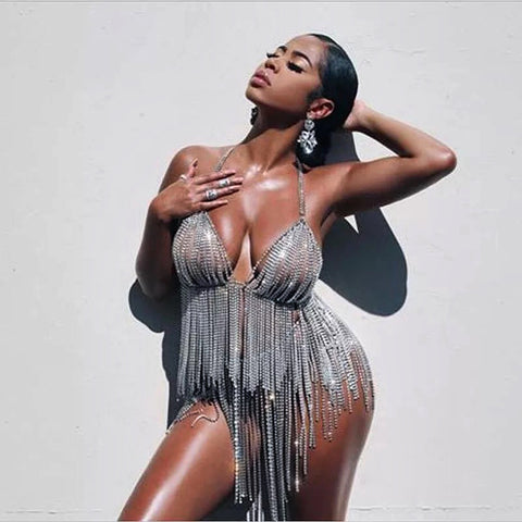 Tassel bralette, crystal, body bikini chained harness, perfect for Bikini SZN