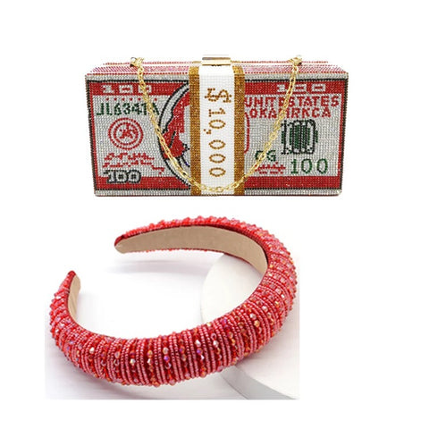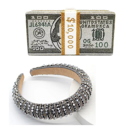 Heavyweight, good quality wristlet with new trending plush headband encrusted in crystals