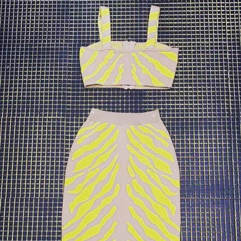 The Neon Safari is a body-hugging set made of high-quality spandex material. This durable fabric provides a comfortable and secure fit, ensuring that your clevage stay in place. The soft and stretchy spandex also offers a sleek and flattering silhouette for a confident and stylish look. Perfect for making a statement and luxurious settings.