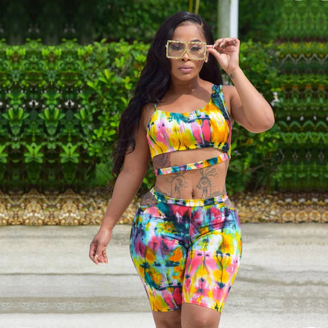 Comfy and sexy two-piece colorful set, peek-a-boo hips with a strappy crop top, perfect for summer’s perfect pair.