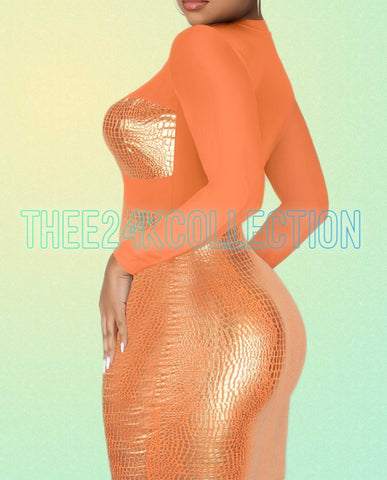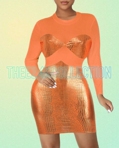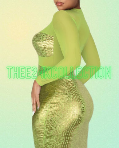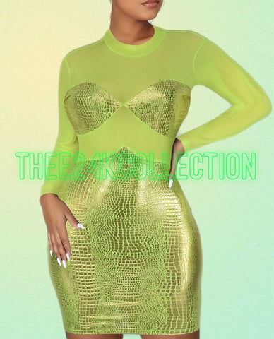 Crocodile Pattern Sheer Mesh Bodycon Dress - Mauve/Rose Gold, Citrus, Lime