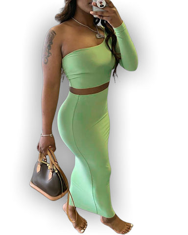 Malibu is a one shoulder crop top and form fitting maxi skirt made with soft, stretchy material. It's perfect for any occasion, from brunch to vacation, and flatters all silhouettes. Embrace your sexy side with Malibu.